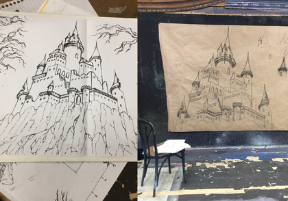 Mean Ghouls | Witch's Tower Drop 20' X 36' | Hasty Pudding Theatricals | Scenic Artist |
